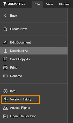 The document version number is sent in the data.version parameter if it is called for the document version from the history. Additionally, the document link is sent in the data.url parameter if it is called for the document changes from the history object. The type of the document which is specified with this link is sent in the data.fileType parameter.