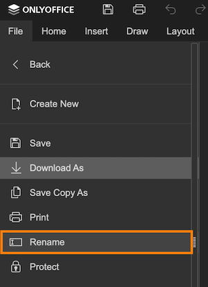 Until version 6.0 the Rename... button is only available if the document.permissions.rename is set to true.
